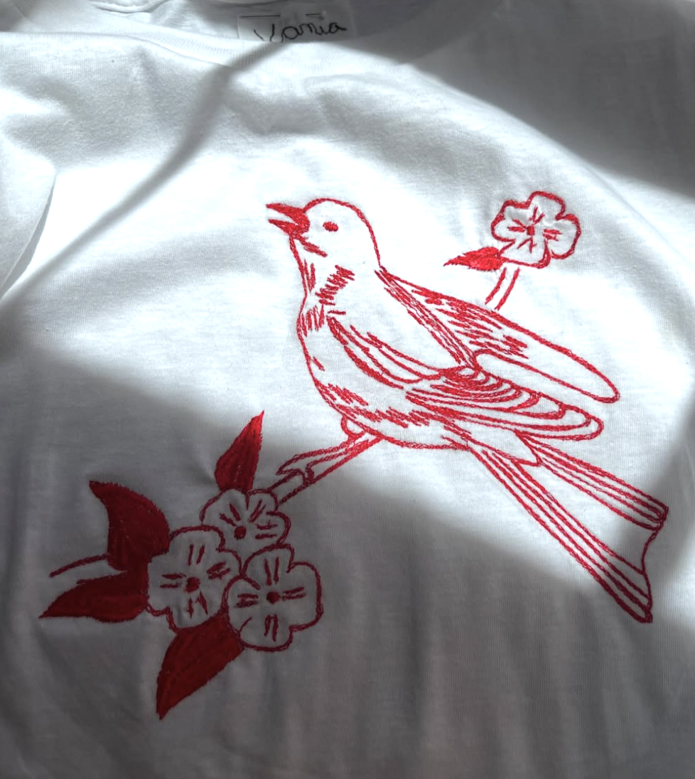 Ideas come to my mind at random times and one time I thought.. wait I could just up-cycle garments by drawing on them with thread!