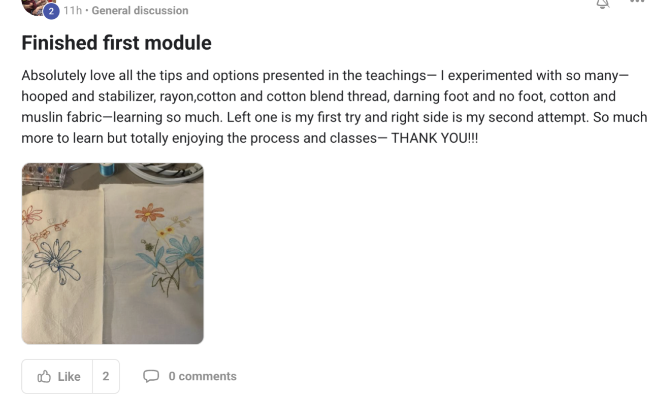 Free Motion Sewing Club is the only online space where you can learn and practice free motion stitching in a way that feels clear, doable, and motivating.